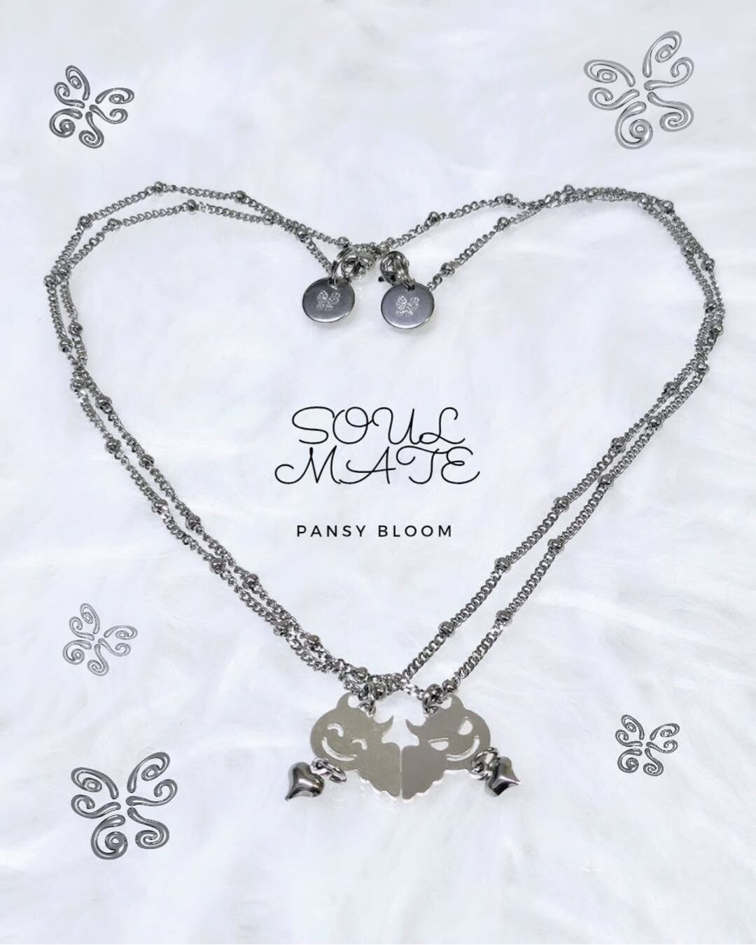 2本のチェーンになりますので、友達やカップル、大切な人とわけあっても可愛いネックレスです。